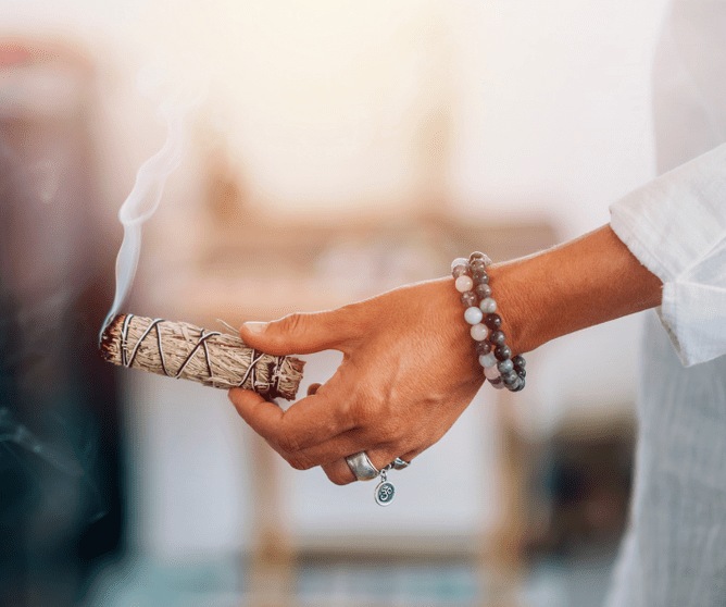 Smudging is the practice of burning sage or other herbs, such as rosemary or lavender, with the intention of clearing negative energy. The smoke from the smoldering sage is thought to attach to negative energy and carry it away, leaving behind a positive and peaceful atmosphere.